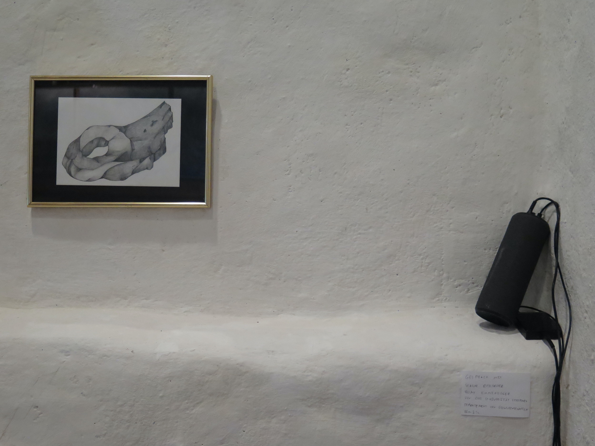 Une présentation publique de la recherche a offert un aperçu de mes recherches au Musée de Morat, présentées sous diverses formes, de manière brute et fragmentée, afin de rendre compte de la richesse symbolique, culturelle et scientifique de cette roche de manière directe et authentique.